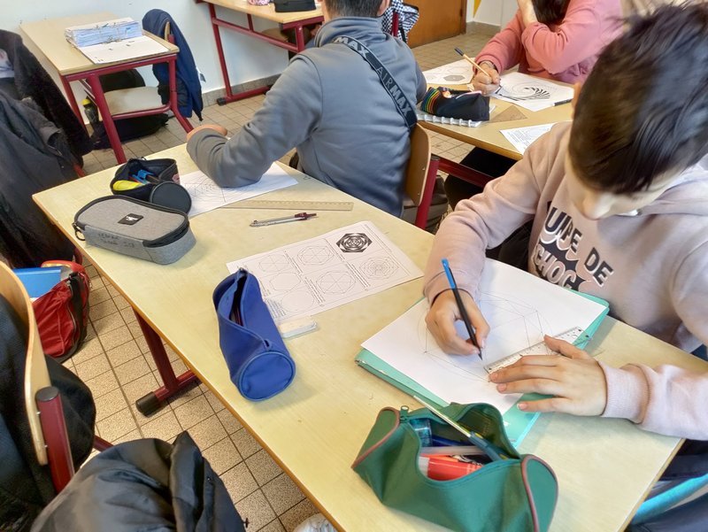 « Pour leurs deux dernières heures d’activité mathématiques avant les vacances de Printemps, les élèves de 1CA et 1CB ont réalisé des illusions d’optique. Celles-ci ont été représentées sous la forme d’hexagones de même grandeur afin de pouvoir réaliser un joli pavage collectif. »