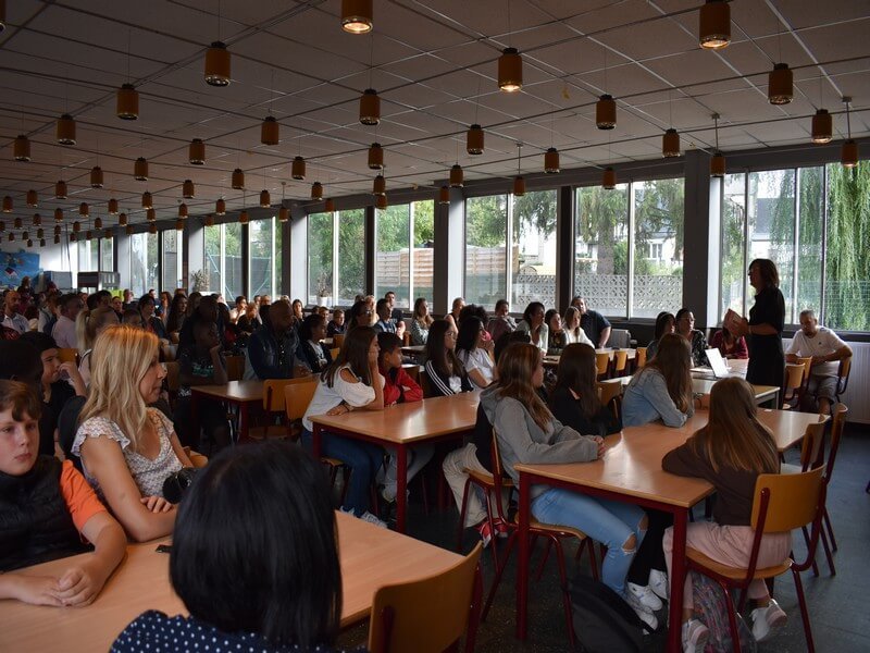 C’est le jour de la rentrée. Rentrée studieuse pour les parents lors de la réunion et pour les élèves dans les différents ateliers où ils apprendront à faire connaissance. Ils se frotteront aussi au tri des déchets.