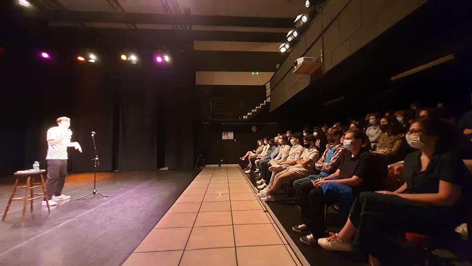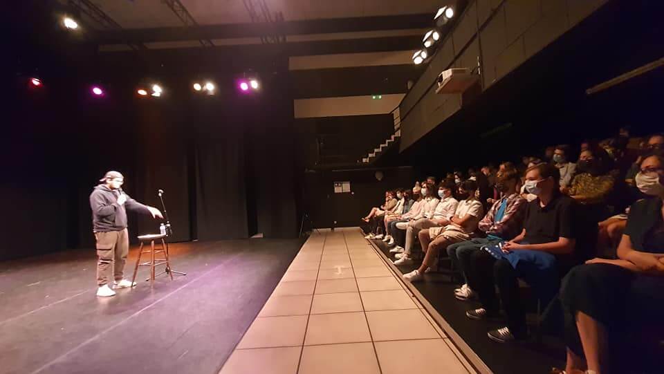 En première partie de soirée, Nikoz et Sacha Ferra, deux humoristes, ont pris possession de la scène du Centre Culturel d’Athus pour proposer un spectacle de style « stand up » aux élèves et à leurs professeurs.