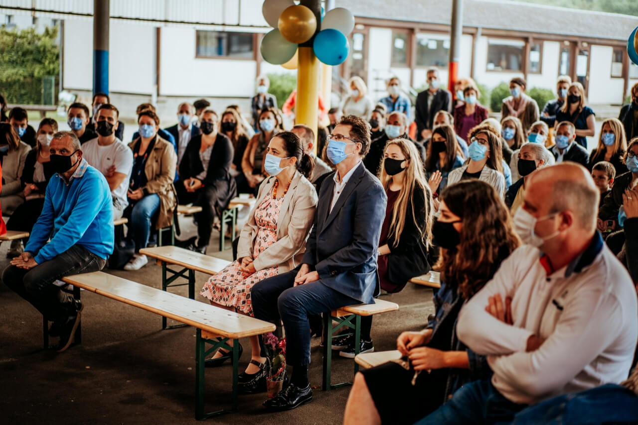 En seconde partie de soirée, les parents ont pu rejoindre leurs enfants dans la cour de l’école afin de participer à la remise des diplômes en plein air! Une première immortalisée par le photographe Gautier.