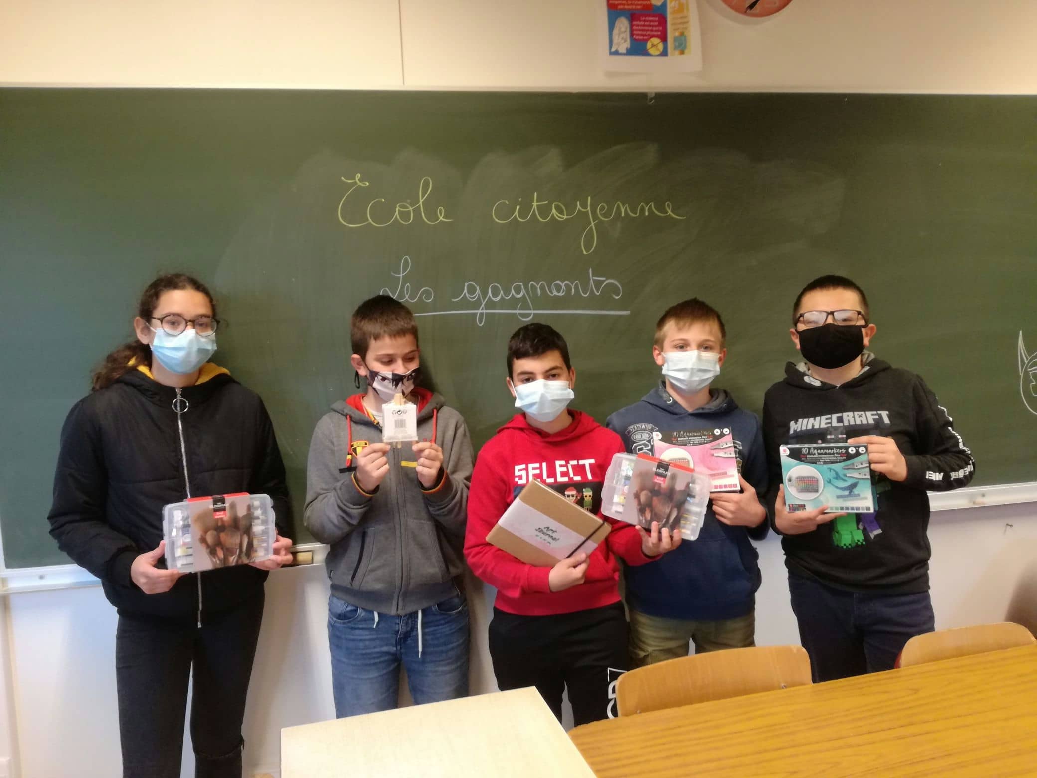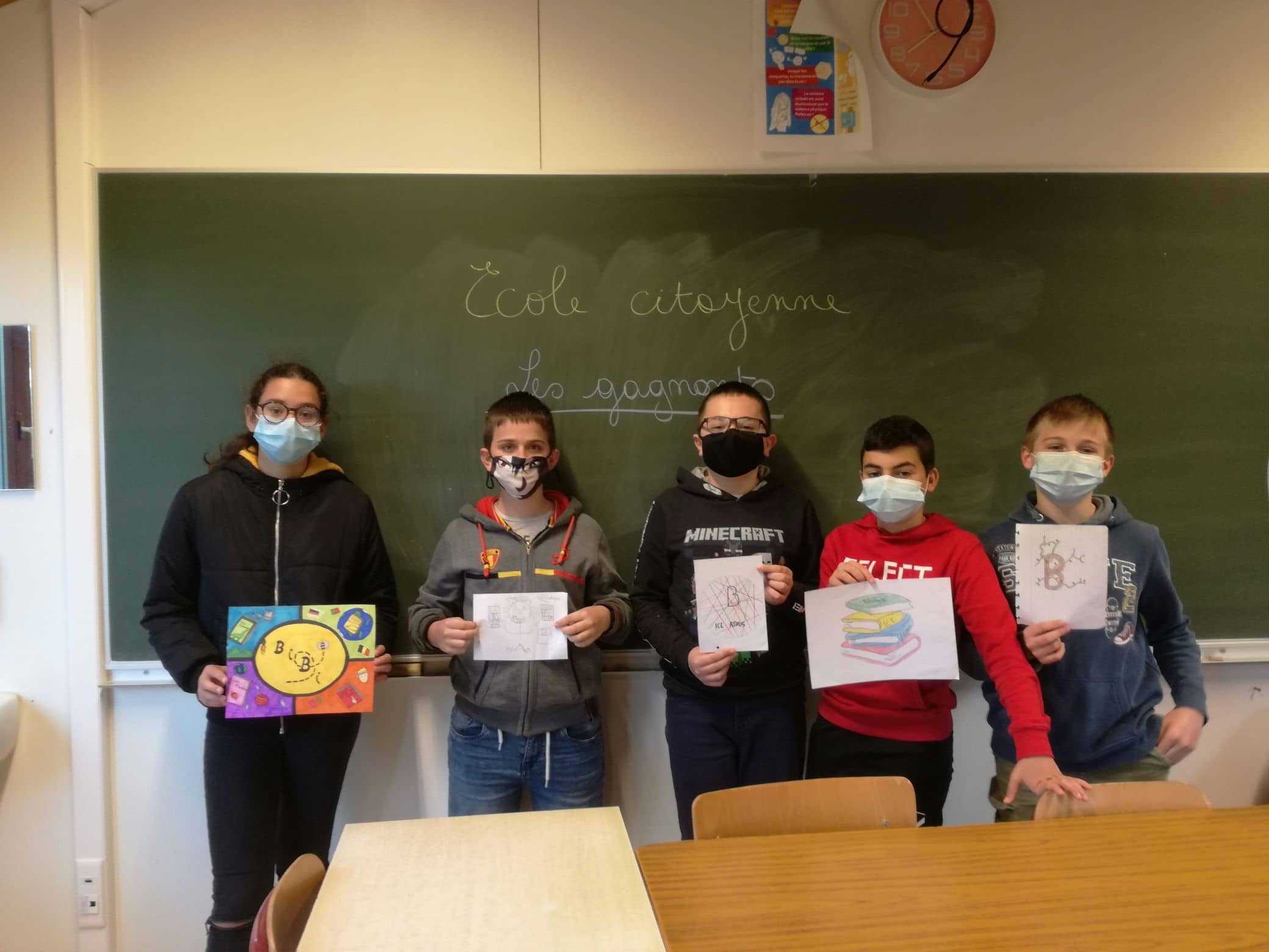Remise des prix pour le concours de logos pour le projet bibliothèque de l’école citoyenne.